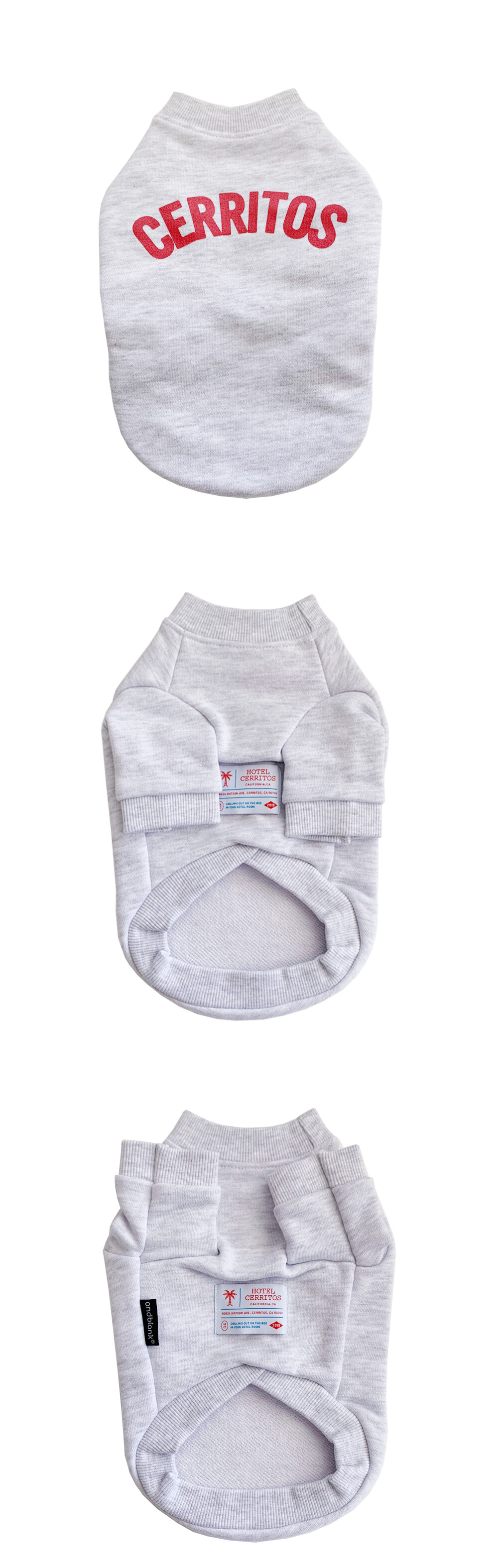 반려동물 전문 브랜드 앤블랭크와 함께 협업해서 만든 애견 스웻셔츠 입니다. 호텔세리토스의 시그니처 스웻셔츠와 후디를 반려동물과 함께 커플로 입으실 수 있습니다.